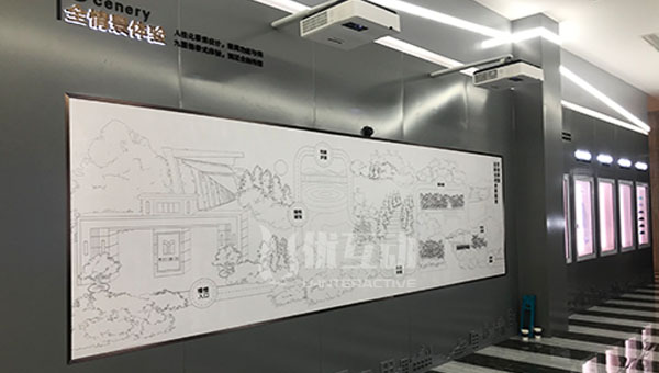 投影雷达互动墙是体验者通过触摸雷达区域进行互动,按照实体规划1:1缩小定制成客户未来的生活环境,用不同的场景,使得整体画面活灵活现,让客户身临其境的体验购房后自己所在的周边环境。通过触摸展现出声光电的体验效果,让人们眼前一亮,是一款不可多得的媒体互动体验。